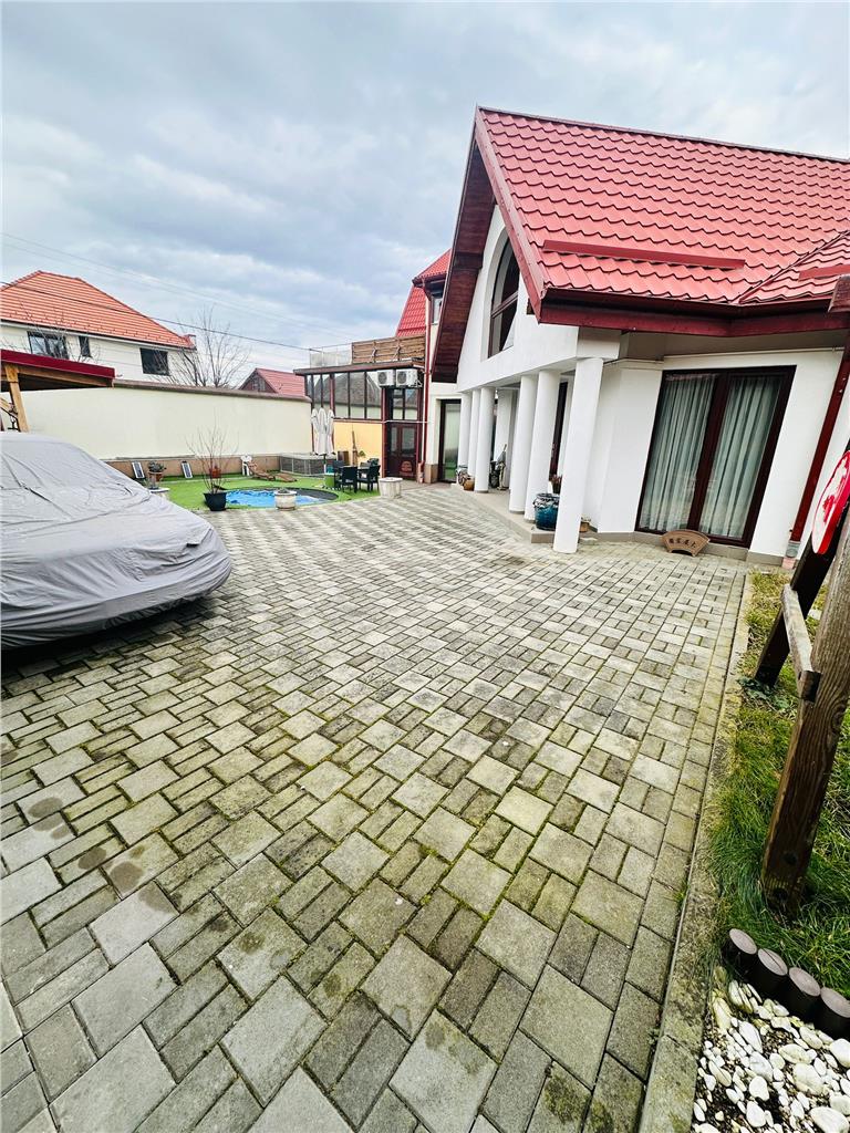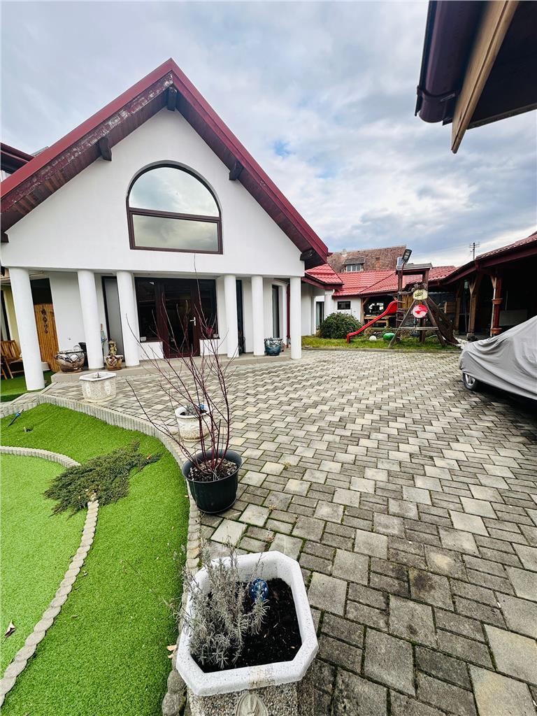 Vă propunem spre vânzare o proprietate deosebită, situată în orașul Cisnădie într-o zonă rezidențială exclusivistă, caracterizată prin liniște și acces facil. Această vilă reprezintă îmbinarea perfectă între eleganța clasică, confortul modern și un spațiu exterior spectaculos, ideal pentru momente de relaxare în familie.
