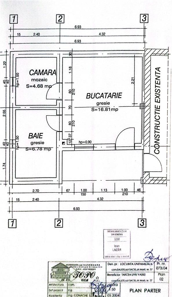 Suprafață Totală Construită pe Teren (P.O.T.): 150.97 mp, cu un grad de ocupare de 42.76%.