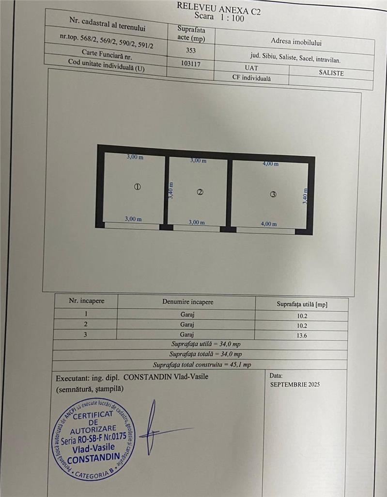 Anexă (Garaj C2): cuprinde trei spații tip Garaj sau depozitare (10.2 mp, 10.2 mp, 13.6 mp), perfecte pentru vehicule, atelier sau un spațiu de lucru.