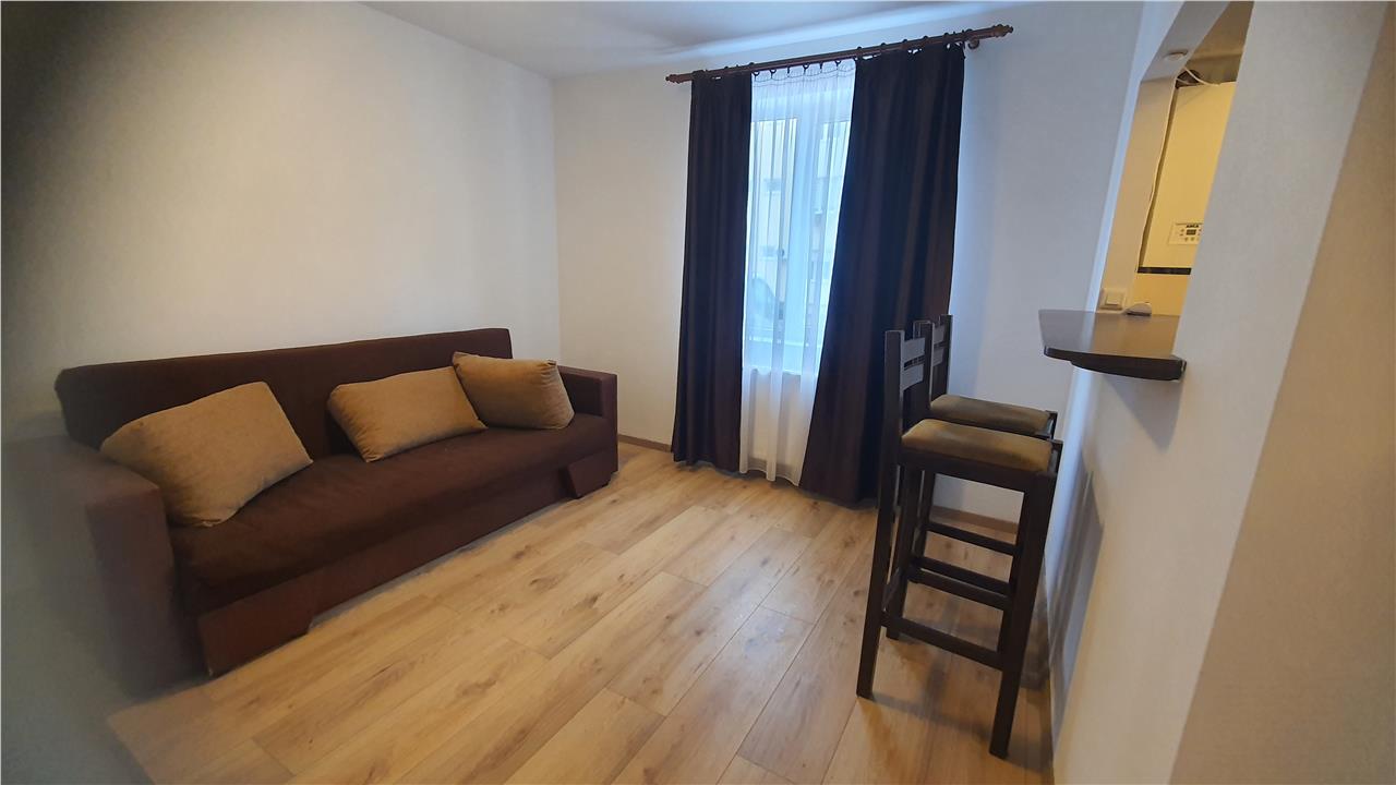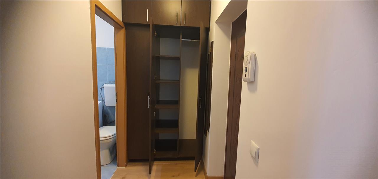 Mobilier: Complet mobilată, incluzând canapea extensibilă, bar cu scaune înalte și dressing generos pe hol.